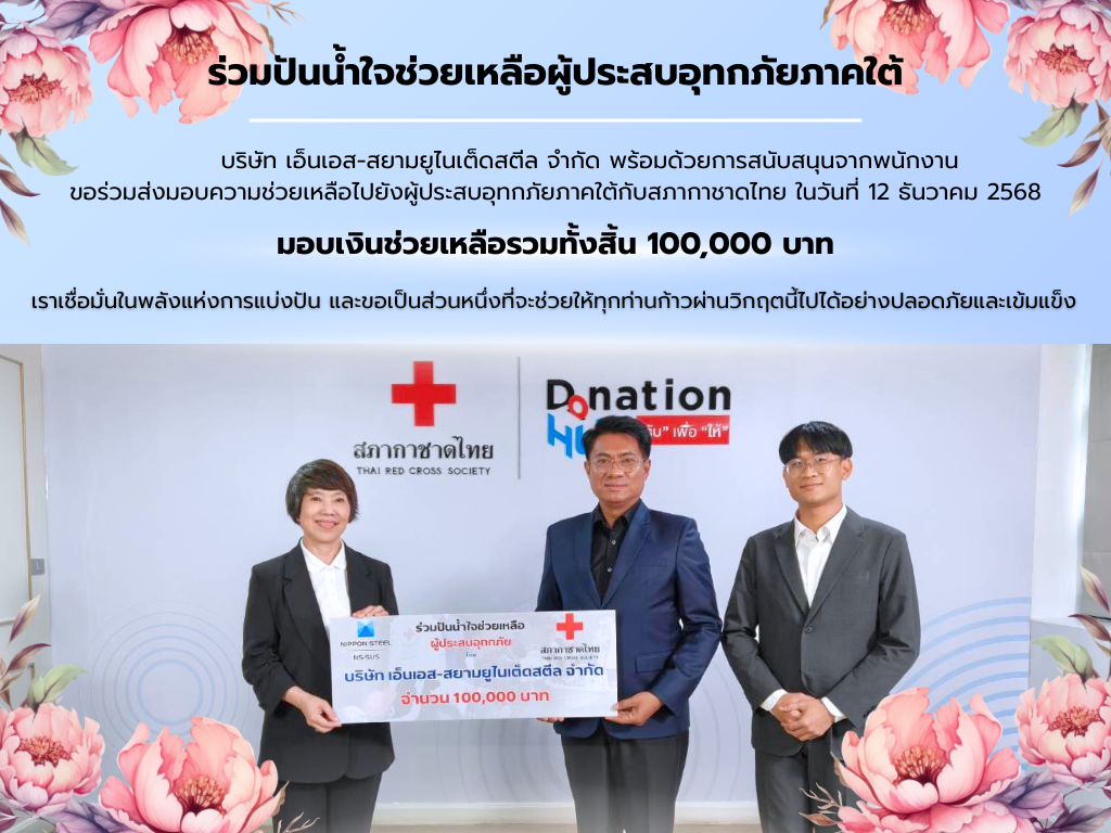 NS-SUS พร้อมด้วยการสนับสนุนจากพนักงาน มอบเงินช่วยเหลือผู้ประสบอุทกภัยภาคใต้กับสภากาชาดไทย จำนวน 100,000 บาท