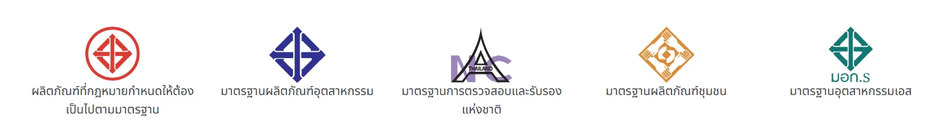 - เครื่องหมายมาตรฐานทั่วไป: เครื่องหมายรับรองคุณภาพผลิตภัณฑ์ที่ สมอ. กำหนดมาตรฐานของผลิตภัณฑ์นั้นไว้ ซึ่งผู้ผลิตสามารถยื่นขอการรับรองคุณภาพโดยสมัครใจ เพื่อการพัฒนาคุณภาพของผลิตภัณฑ์ให้เป็นไปตามเกณฑ์กำหนดในมาตรฐานและหลักประกันให้กับผู้บริโภคหรือผู้ซื้อผลิตภัณฑ์นั้นมีคุณภาพ มีความปลอดภัยคุ้มค่า